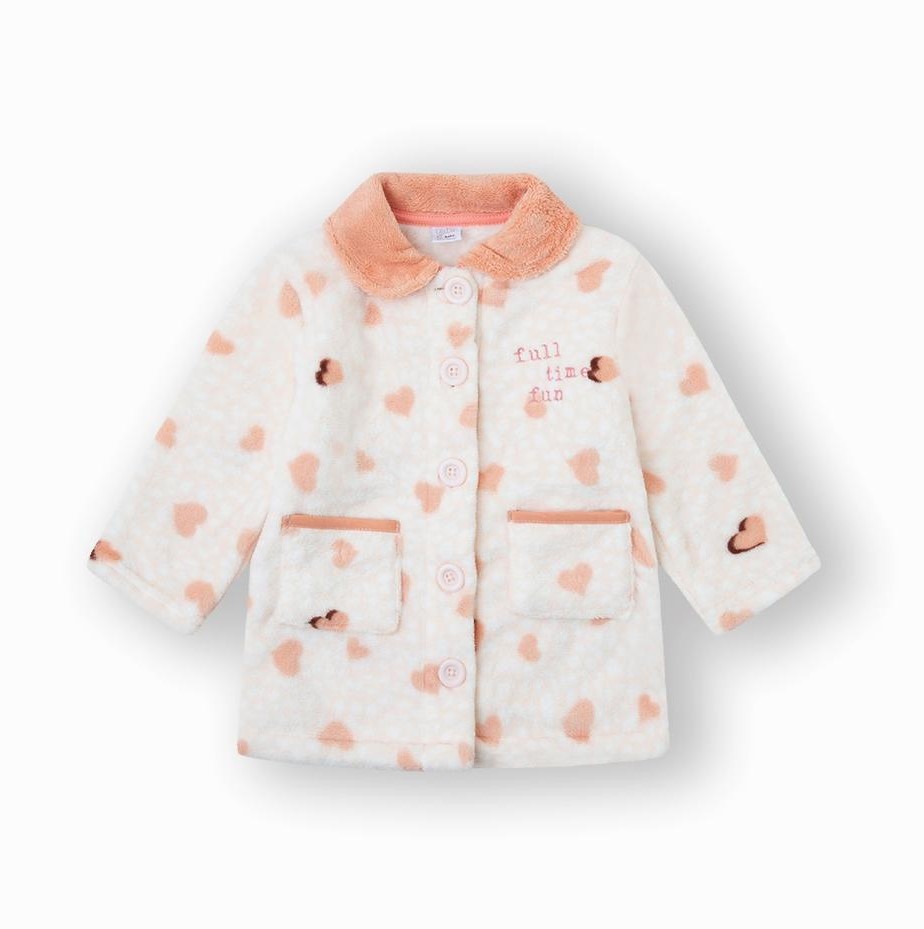 Bata de invierno para bebé de la marca Yatsi confeccionada en coralina de gran calidad, con cierre de cremallera y bolsillo delantero.