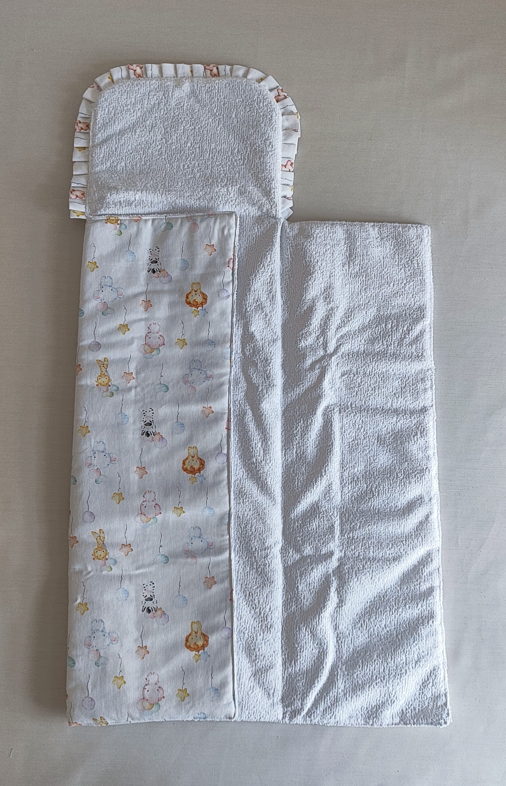 Cambiador de color blanco  con pique estampado y waffle azul.