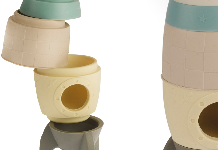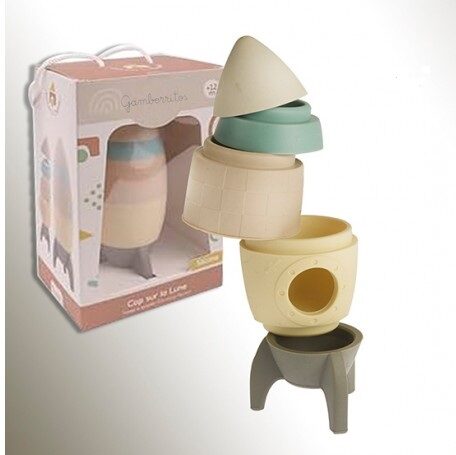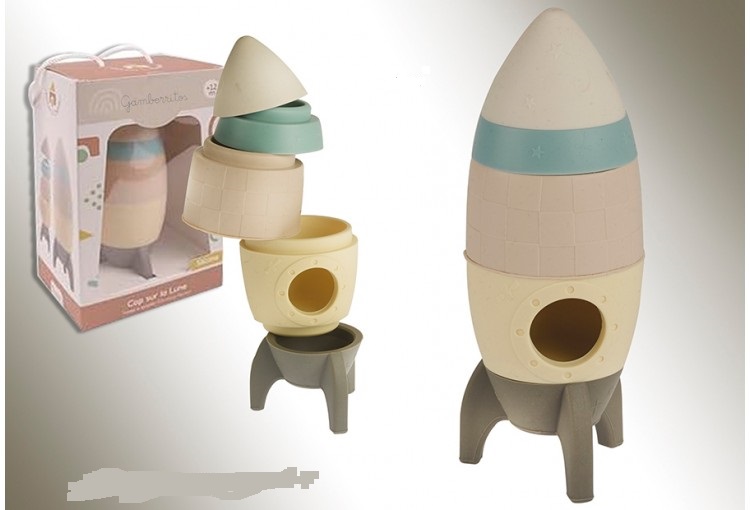 Juego apilable de silicona Gamberritos con diseño de Cohete. Estimula el desarrollo sensorial y la coordinación del bebé.