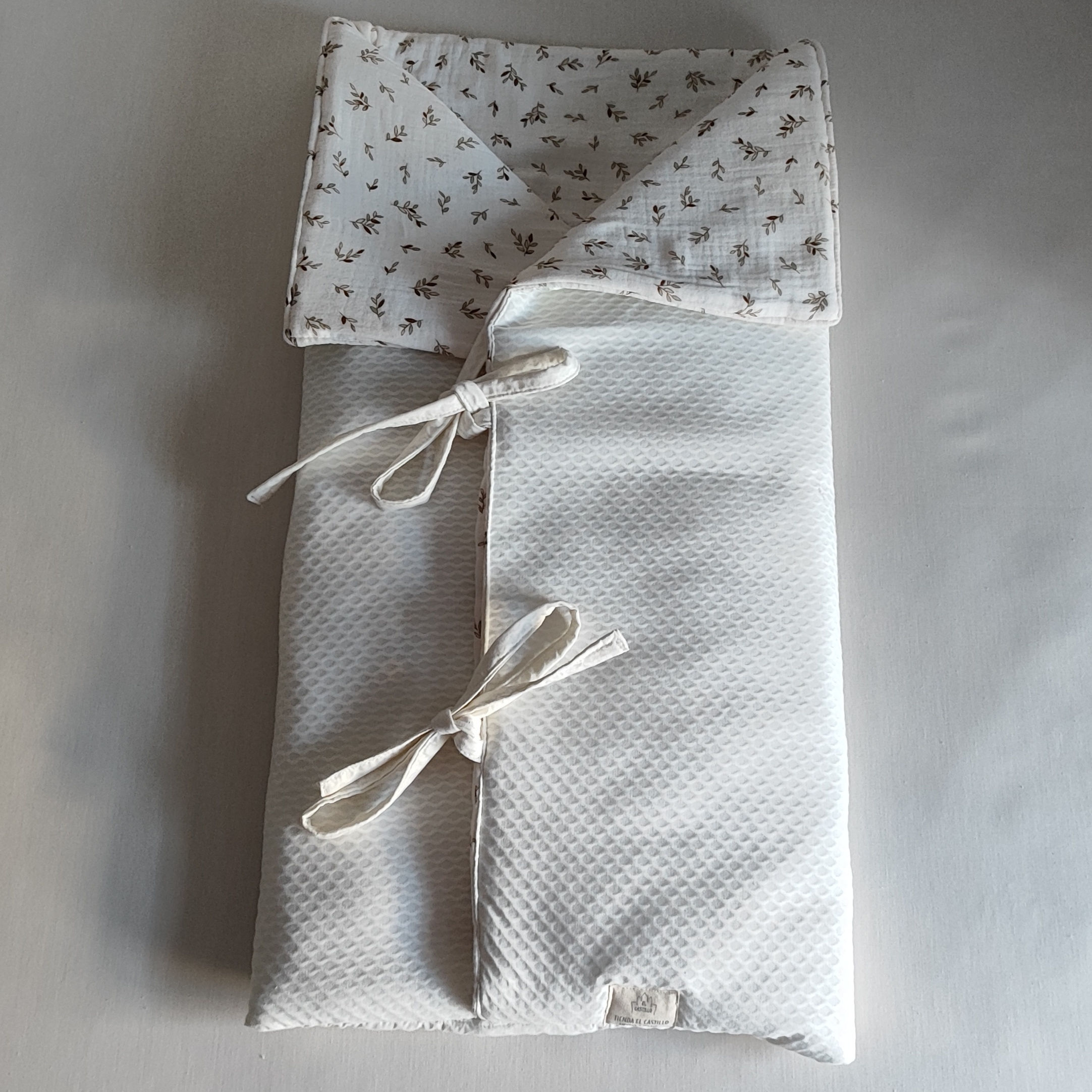 Saco de bebe para capazo tela de piqué beige  y muselina.