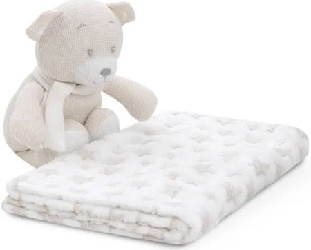 Set peluche algodón Oso + manta estrellas.